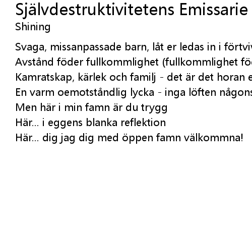 | Song | Självdestruktivitetens Emissarie |