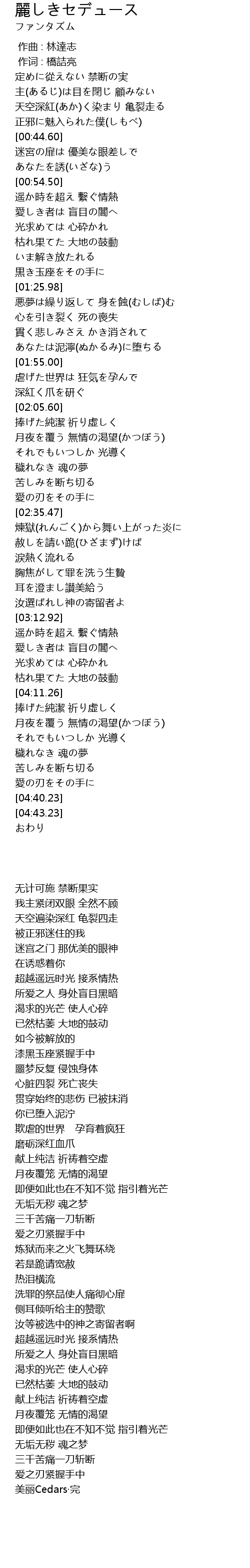 | [04:16.65] | 月夜を覆う 無情の渇望(かつぼう) |