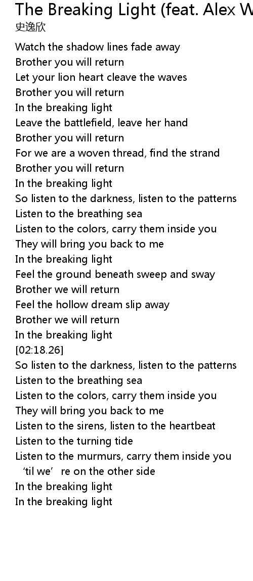| [02:09.41] | In the breaking light |