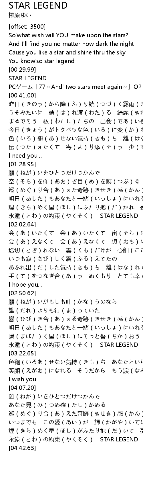 | [01:55.37] | 永遠(とわ)の約束(やくそく) STAR LEGEND |