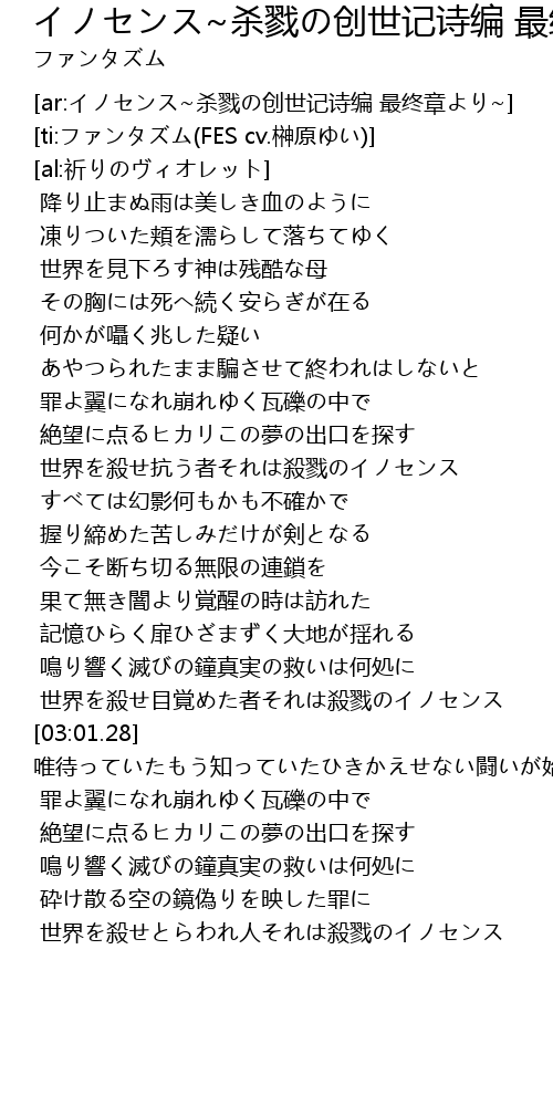 | [ar:イノセンス~杀戮の创世记诗编 最终章より~] | |
