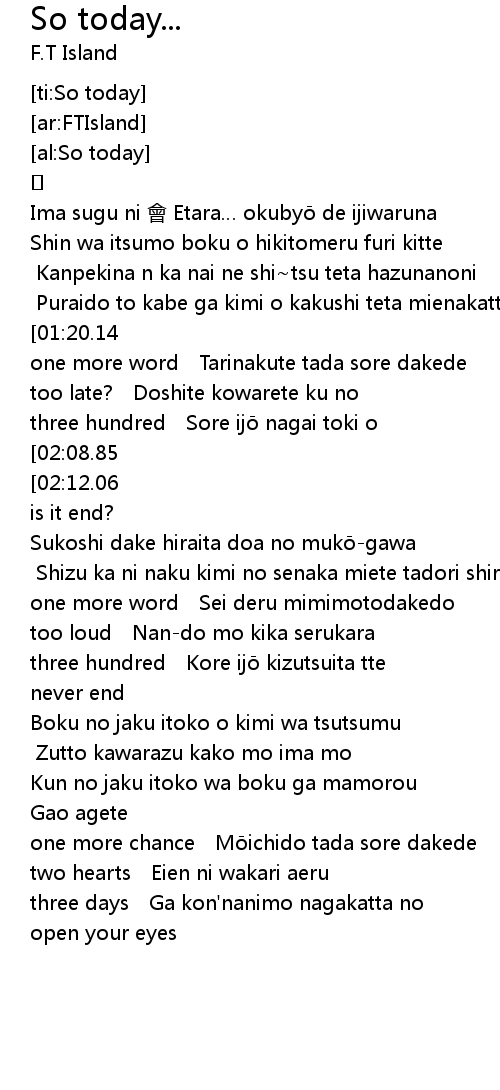 | [02:41.78] | Boku no jaku itoko o kimi wa tsutsumu |
