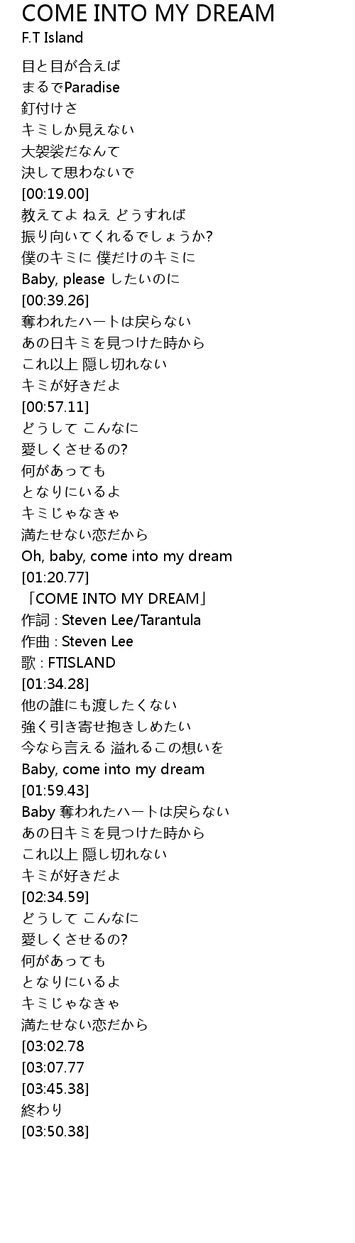 | [01:22.28] | 「COME INTO MY DREAM」 |