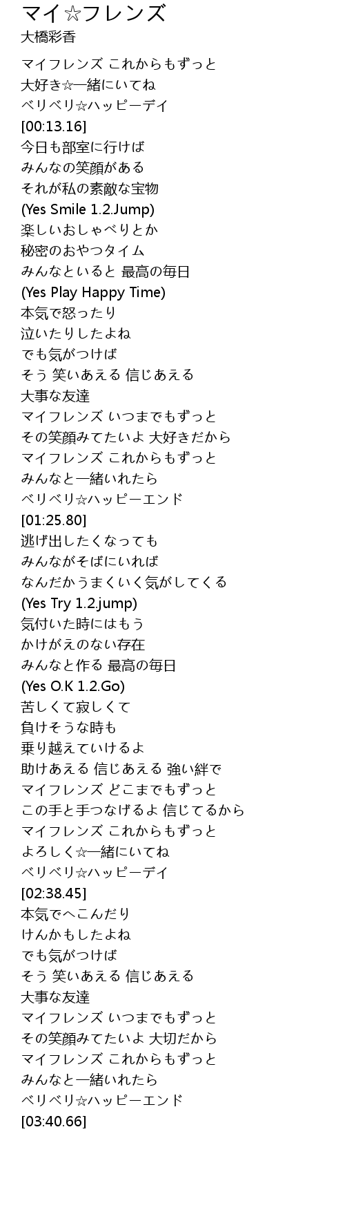 | [03:19.94] | マイフレンズ いつまでもずっと |