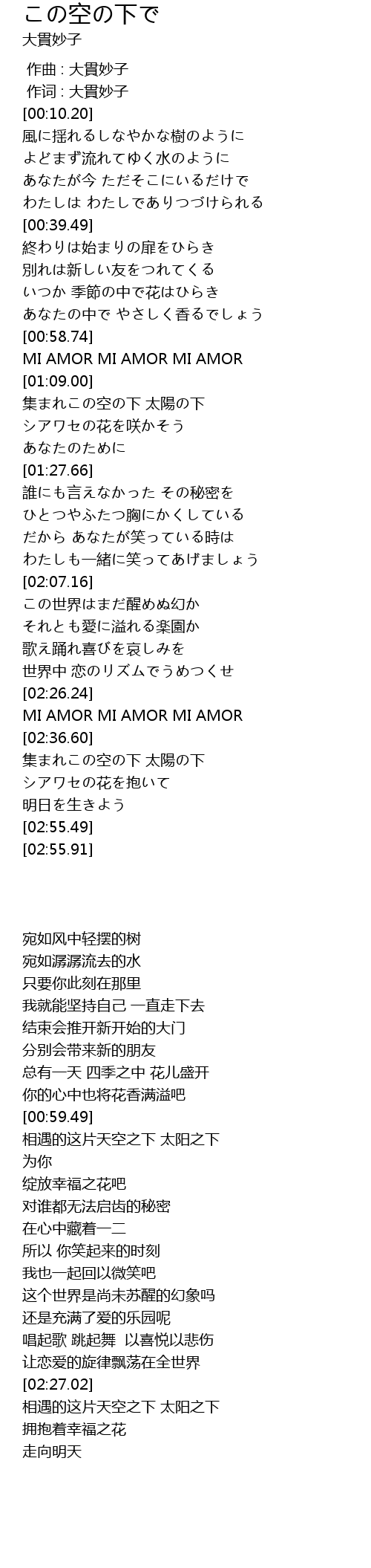 | [02:36.62] | 集まれこの空の下 太陽の下 |