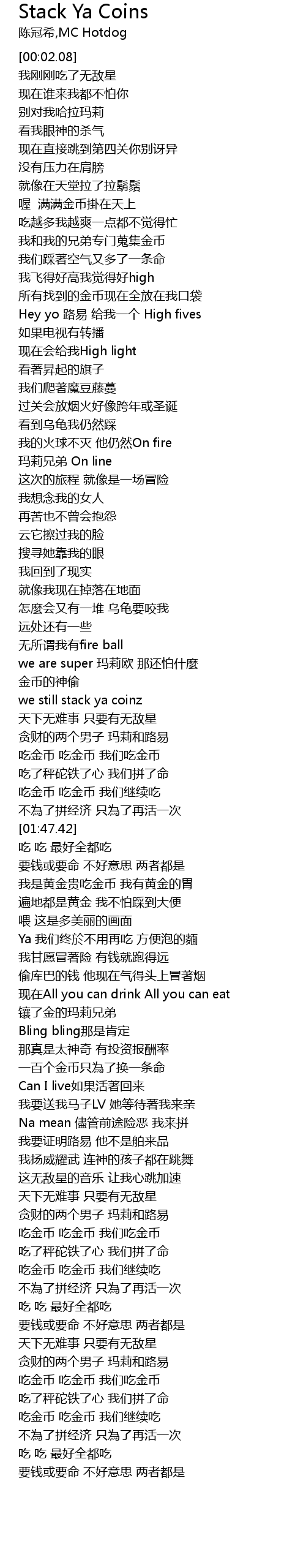 | [01:30.25] | we still stack ya coinz |