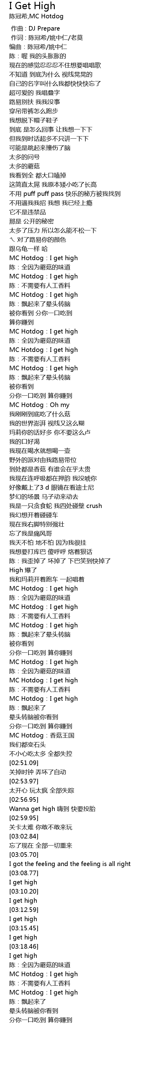 | [02:57.54] | Wanna get high hai dao kuai yao tou tai |