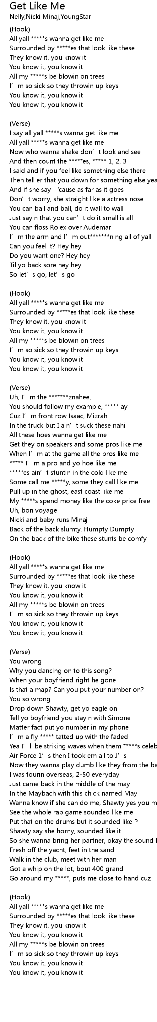 | All yall s wanna get like me | |