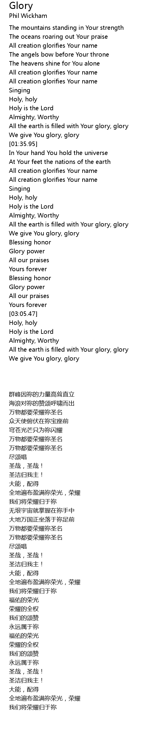 [03:18.70] All the earth is filled with Your glory, glory