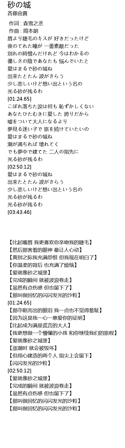 | [02:24.00] | 潮が満ちれば 壊れてく |