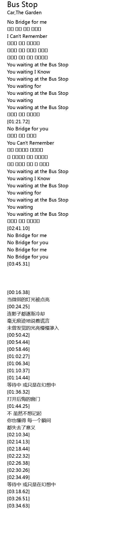 | [02:18.44] | You waiting at the Bus Stop |