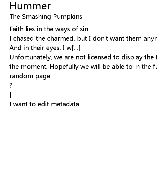 | Unfortunately, we are not licensed to display the full lyrics for this song at the moment. Hopefully we will be able to in the future. Until then, how about a | |