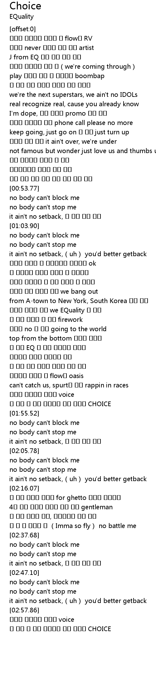 | [01:53.01] | 네 귀에 내 랩이 흐른다면 그건 탁월한 CHOICE |