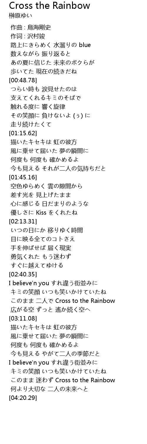 | [04:01.65] | このまま 迷わず Cross to the Rainbow |