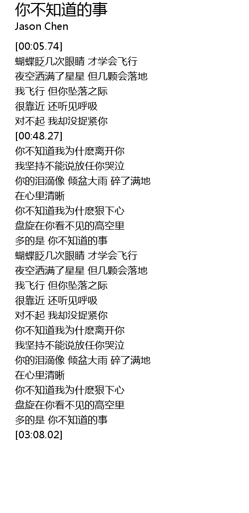 | [02:23.52] | 你不知道我为什麽离开你 |