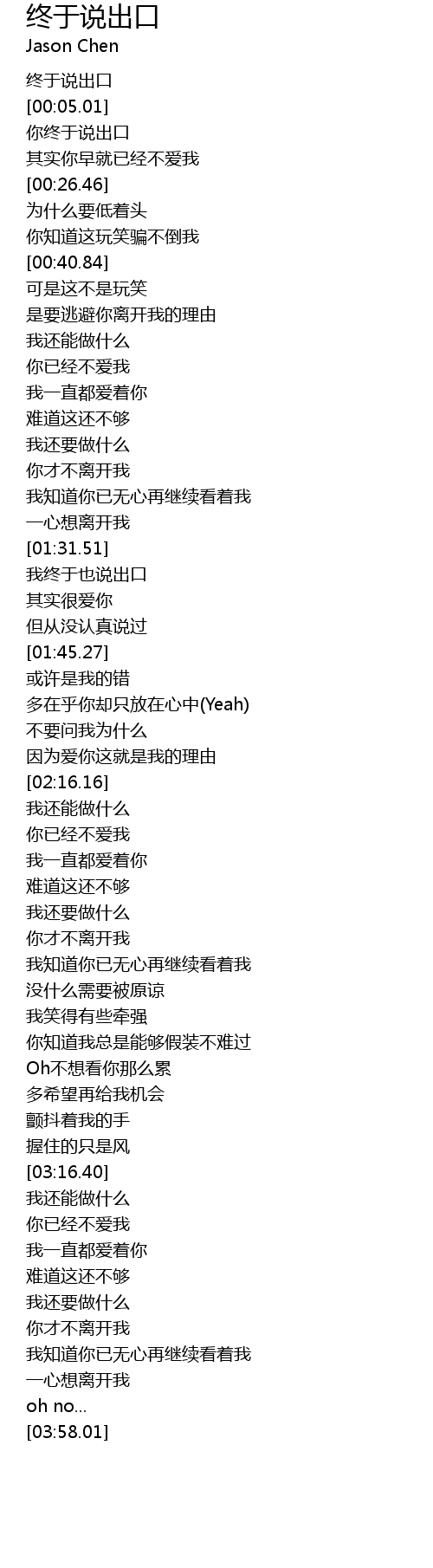 | [01:35.36] | wǒ zhōng yú yě shuō chū kǒu |
