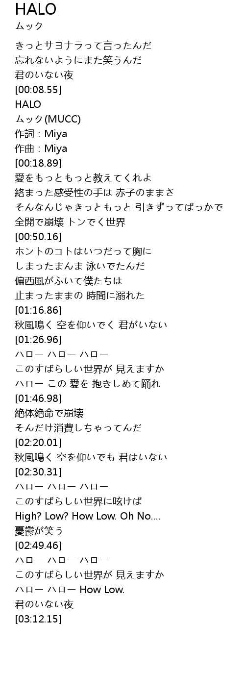 | [03:00.53] | ハロー ハロー How Low. |