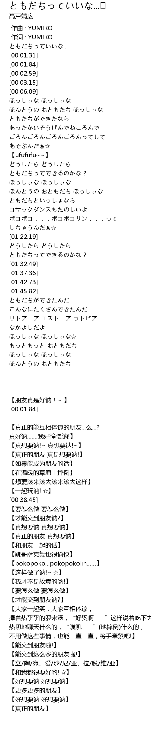 | [01:00.03] | ほんとうの おともだち ほっしぃな |