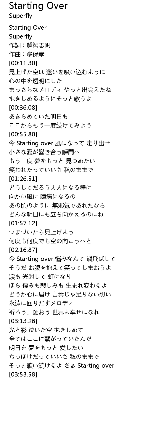 | [00:00.00] | Starting Over |
