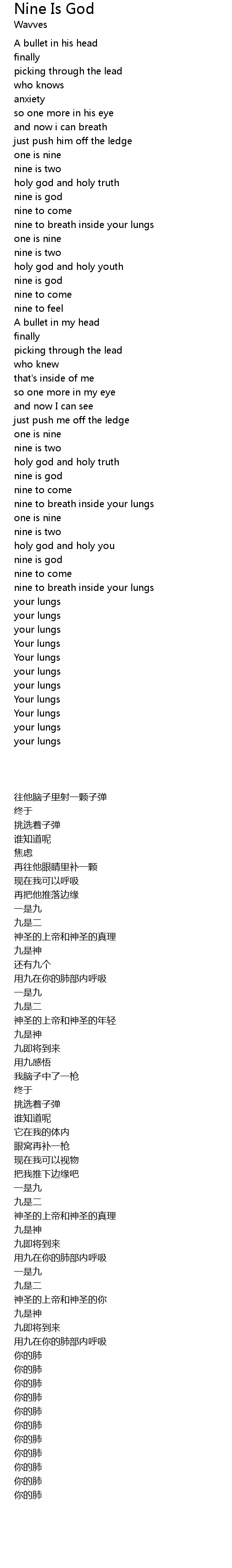 nine to breath inside your lungs |