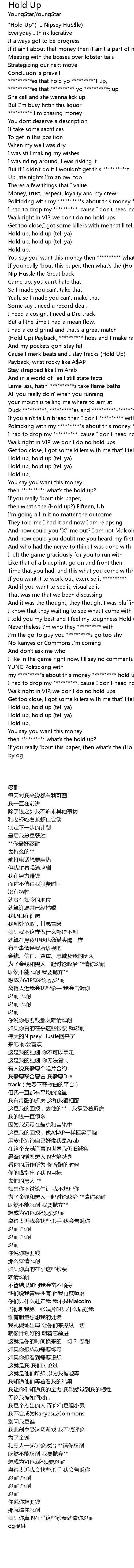 | [00:00.00] | "Hold Up"(Ft: Nipsey Hu$$le) |
