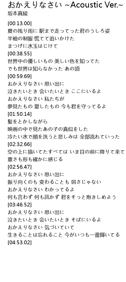 | Song | おかえりなさい ~Acoustic Ver.~ |