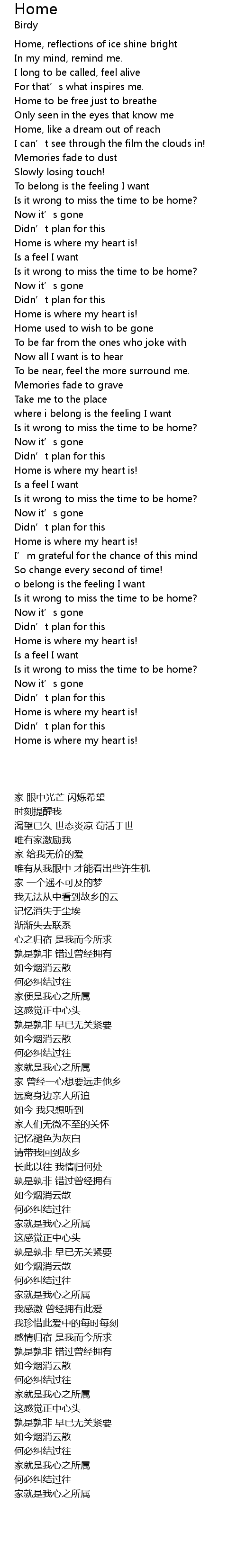 | [01:34.83] | Home used to wish to be gone |