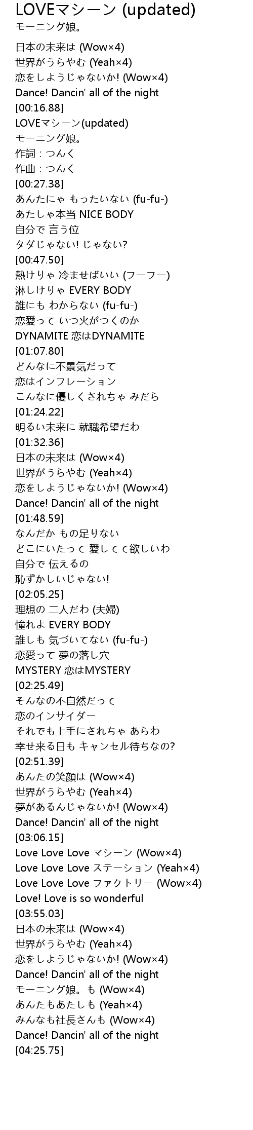 | [04:11.14] | モーニング娘。も (Wow×4) |