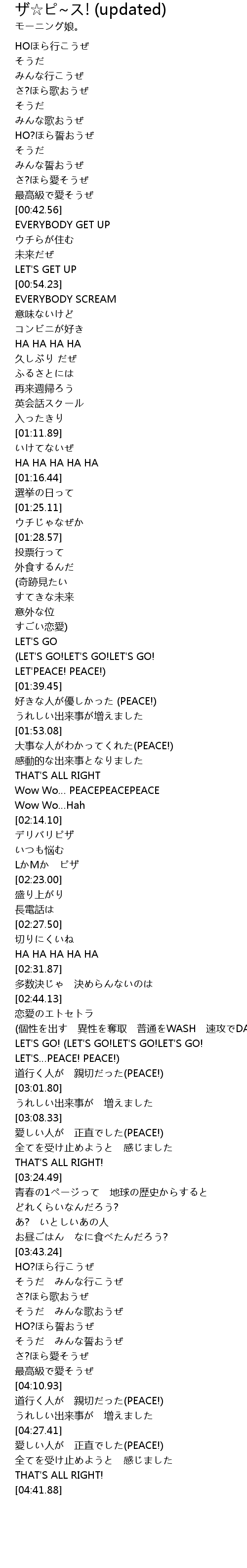 | [04:28.14] | 愛しい人が 正直でした(PEACE!) |