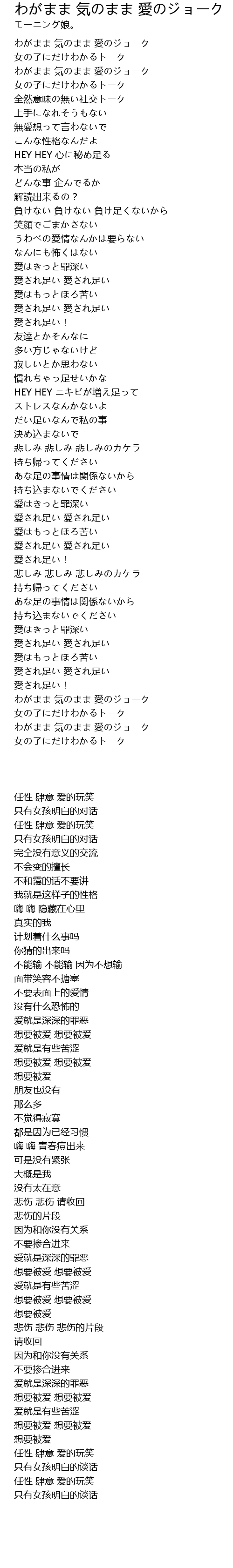 | [03:44.92] | わがまま 気のまま 愛のジョーク |