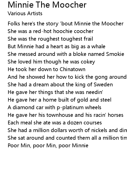 Folks here's the story 'bout Minnie the Moocher |