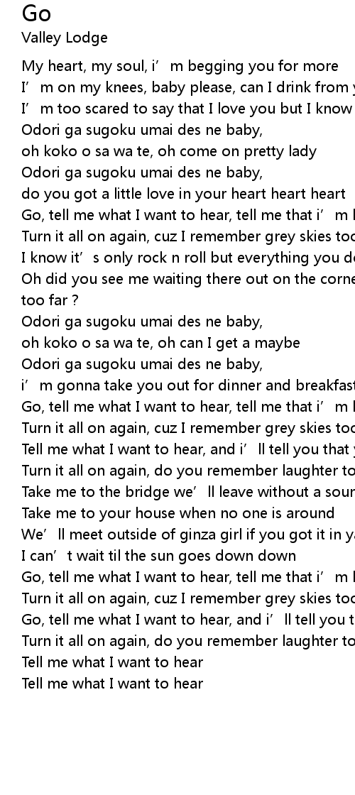 | Go, tell me what I want to hear, and i’ll tell you that you’re beautiful | |