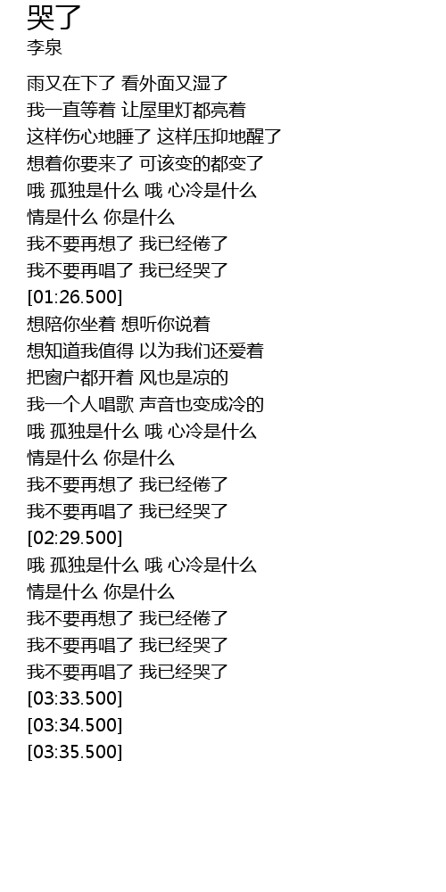 | [03:20.500] | 我不要再唱了 我已经哭了 |
