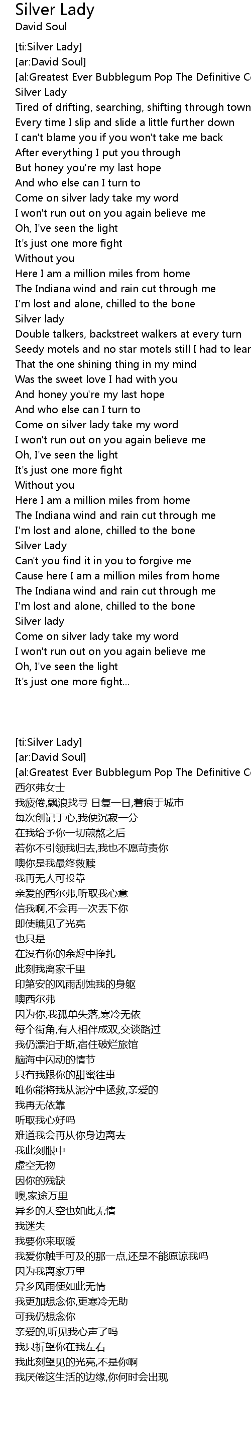 [ti:Silver Lady] |