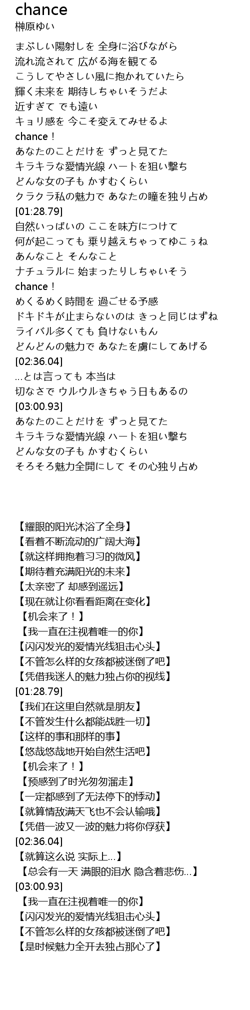 | [00:53.19] | キョリ感を 今こそ変えてみせるよ |