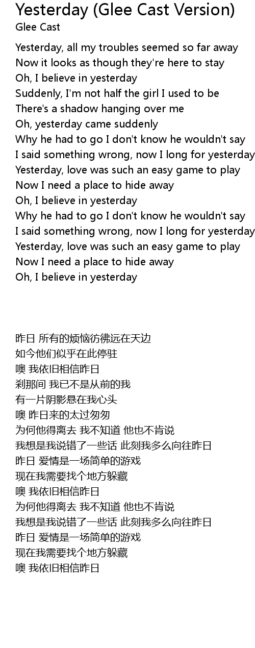 Oh, I believe in yesterday |