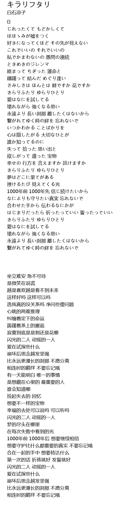 | [02:13.907] | きらりふたり ゆらりひとり |