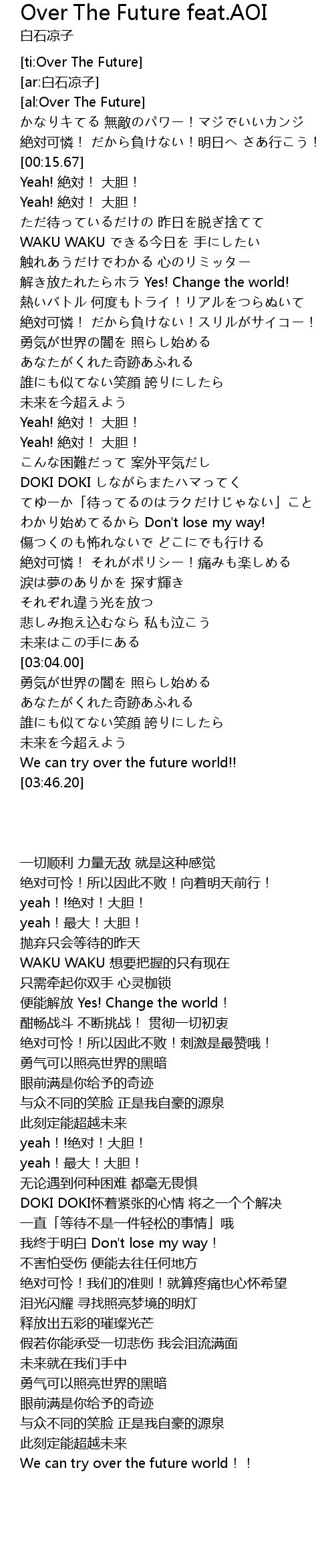 | [00:49.75] | 解き放たれたらホラ Yes! Change the world! |