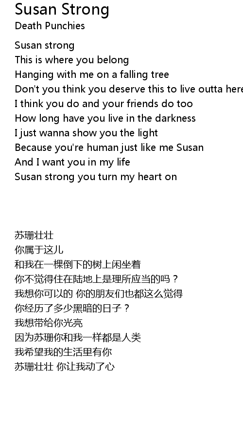 | [00:02.5] | Susan strong |