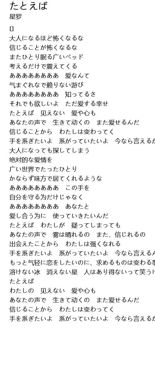 | 手を系ぎたいよ 系がっていたいよ 今なら言えるかも 爱している |