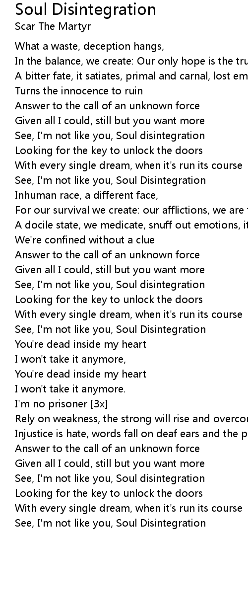 See, I'm not like you, Soul disintegration |