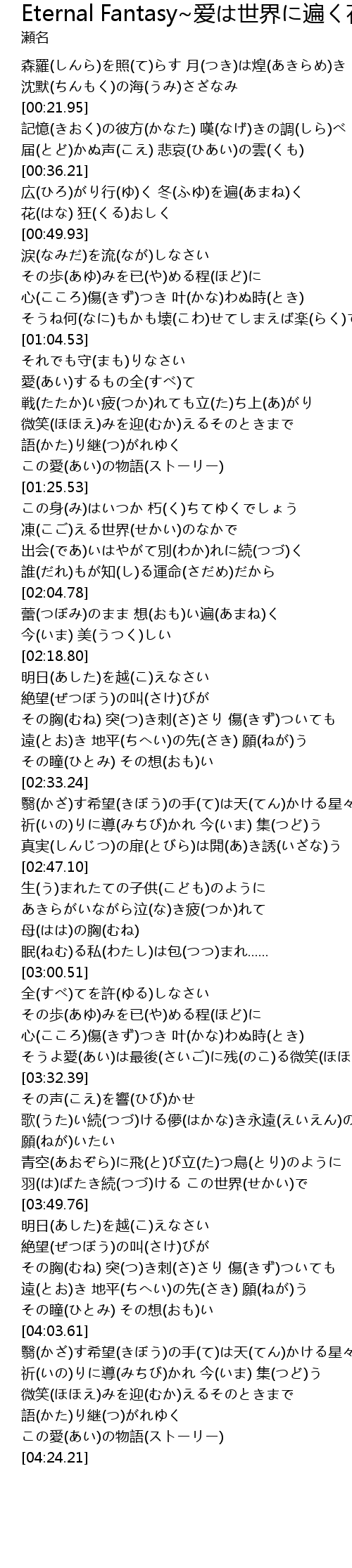 | [03:34.01] | 歌(うた)い続(つづ)ける儚(はかな)き永遠(えいえん)の夢(ゆめ) |