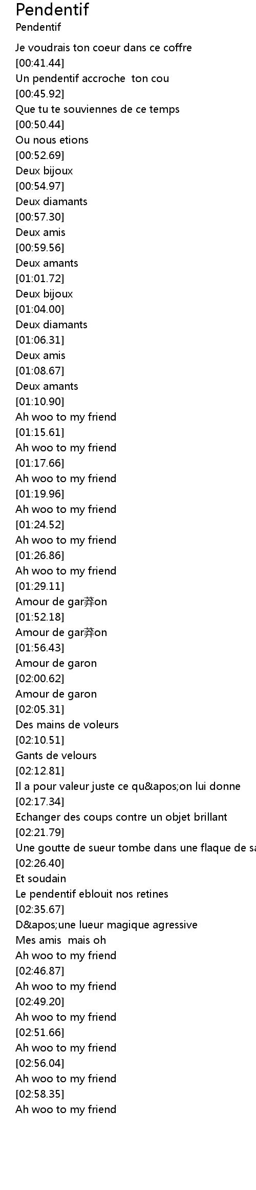 | [02:28.93] | Le pendentif eblouit nos retines |