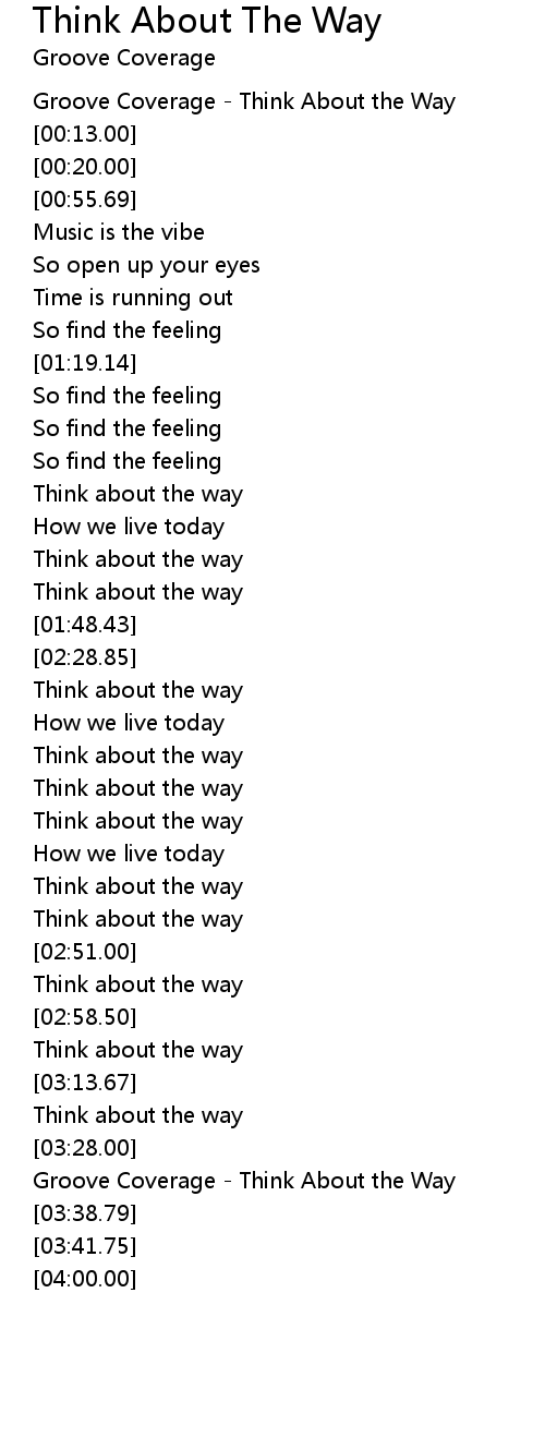 | [00:01.00] | Groove Coverage - Think About the Way |