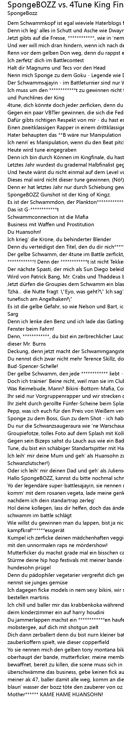 | Hol deine kollegen, lass dir helfen, doch das ndert nichts daran, das dich der schwamm im battle schl gt | |