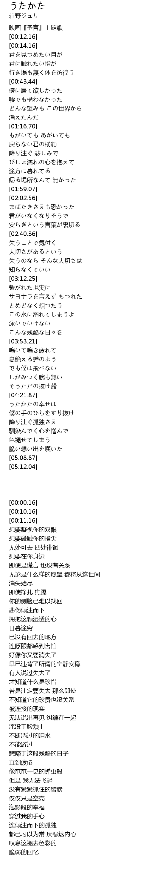 | [00:11.16] | 映画『予言』主題歌 |