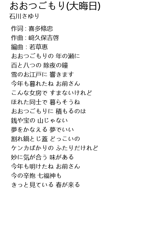 | [00:30.743] | おおつごもりの 年の瀬に |