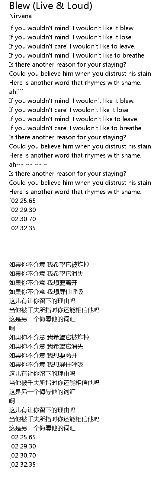 | [00:58.53] | If you wouldn t mind' I wouldn t like it blew. |