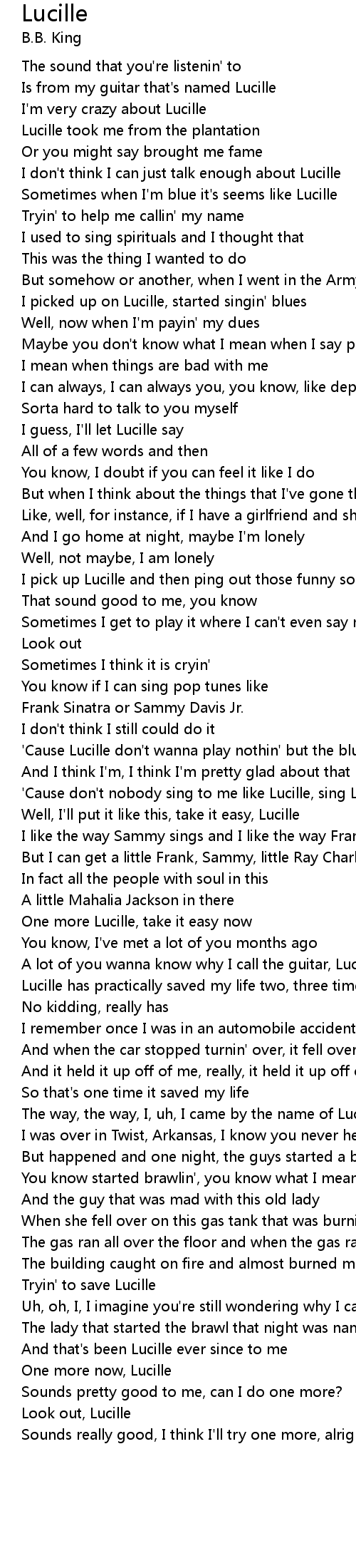 Uh, oh, I, I imagine you're still wondering why I call it Lucille |