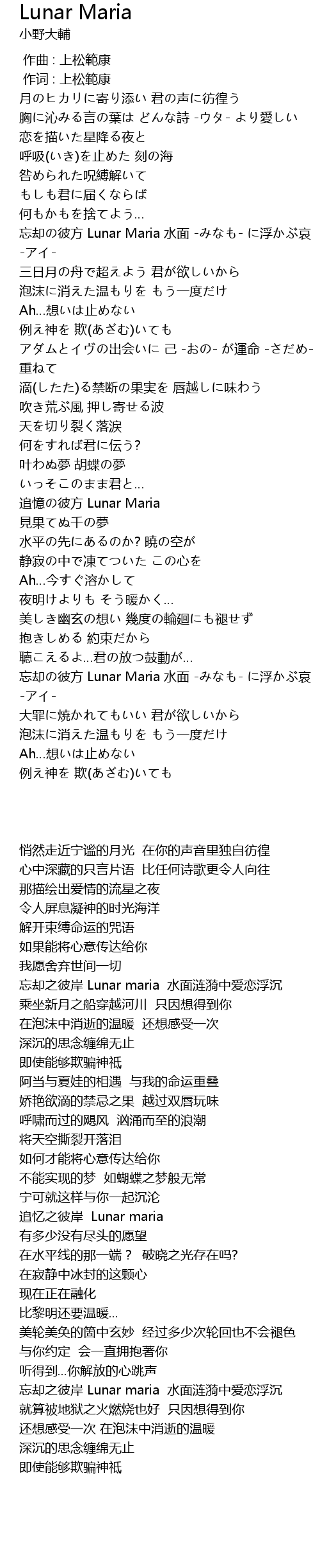 | [01:02.760] | 忘却の彼方 Lunar Maria 水面 -みなも- に浮かぶ哀 -アイ- |